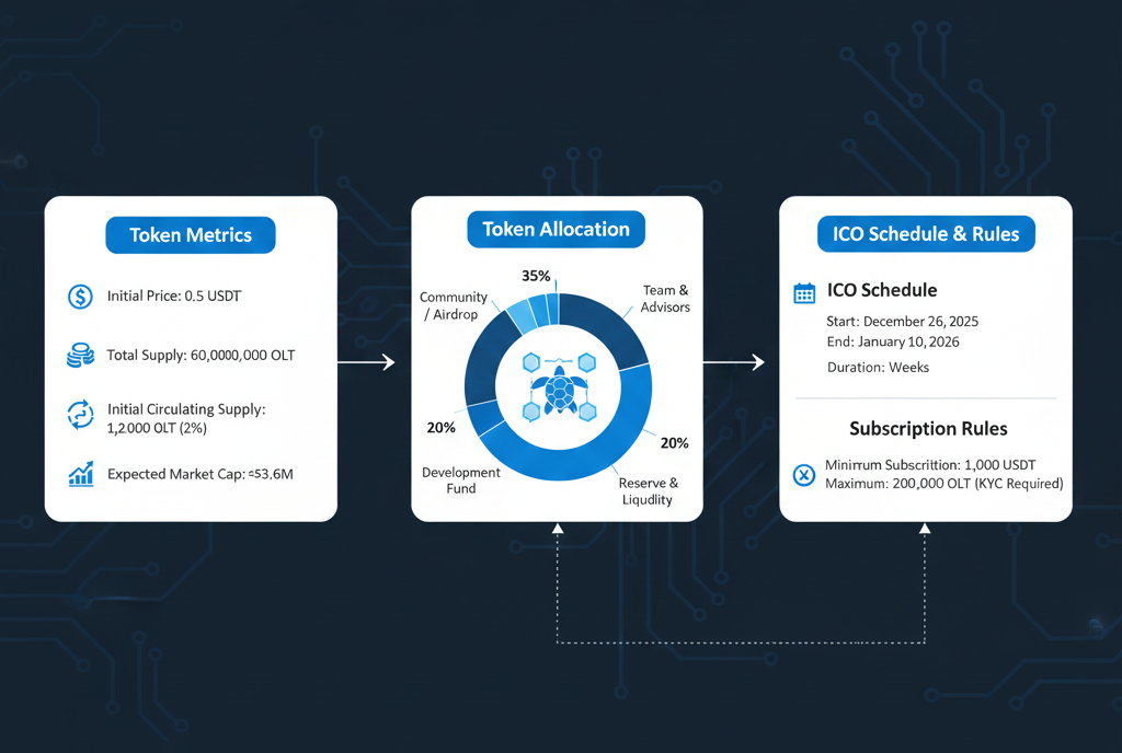 OceanLedger Token (OLT) is a blockchain-based digital asset focused on marine environmental protection. The project aims to promote global ocean ecosystem restoration through marine carbon sink management, plastic recycling traceability, and blue economy incentive mechanisms.